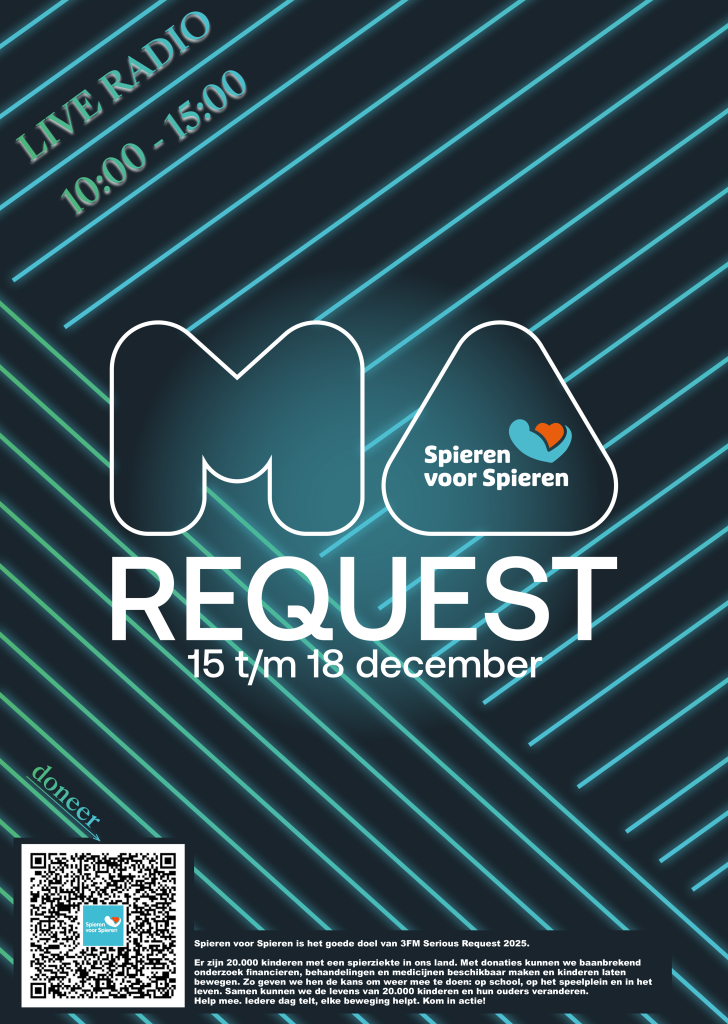 Van 15 december tot en met 18 december verandert de radio show Malive in Ma request. Met Ma request zamelen de studenten van de opleiding Media redactie Medewerker op het Mediacollege geld in voor stichting spieren voor spieren. Mensen kunnen voor een kleine donatie een nummer aanvragen die hun in de uitzending willen horen. Al het geld dat word opgehaald gaat naar het 3fm Serious Request.