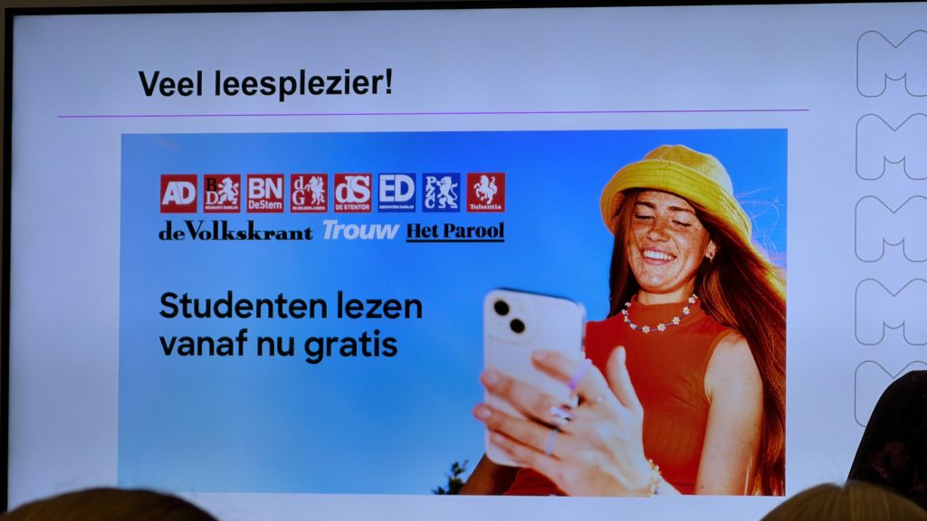 Dinsdag werd op het Mediacollege een nieuw initiatief van DPG Media gepresenteerd: alle studenten tussen de 16 en 25 jaar kunnen gratis een digitaal krantenabonnement krijgen. Daarmee kun je online kranten lezen zoals AD, de Volkskrant, Het Parool, Trouw en verschillende regionale kranten.